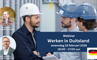 Tijdens dit webinar laten Carel van Vliet, Koninklijke Metaalunie en Nicki Welchering, ALPMANN FRÖHLICH advocaten zien hoe u juridisch zeker en praktisch efficiënt in Duitsland kunt werken. Zij bespreken de belangrijkste kansen, verplichtingen en uitdagingen voor Nederlandse ondernemers die met personeel in Duitsland reeds actief zijn of voor de toekomst willen worden.